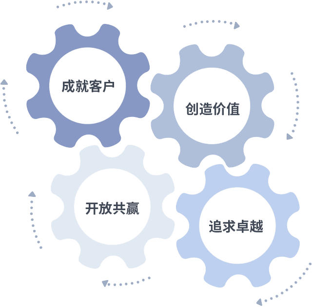 成就客户是一切决策的出发点,创造价值是衡量所有工作的标准,追求卓越是熊猫国际做事做人的态度,开放共赢是熊猫国际的格局也是最终的结果。价值观的齿轮环环相扣,推动着组织里的每个人不断向前。